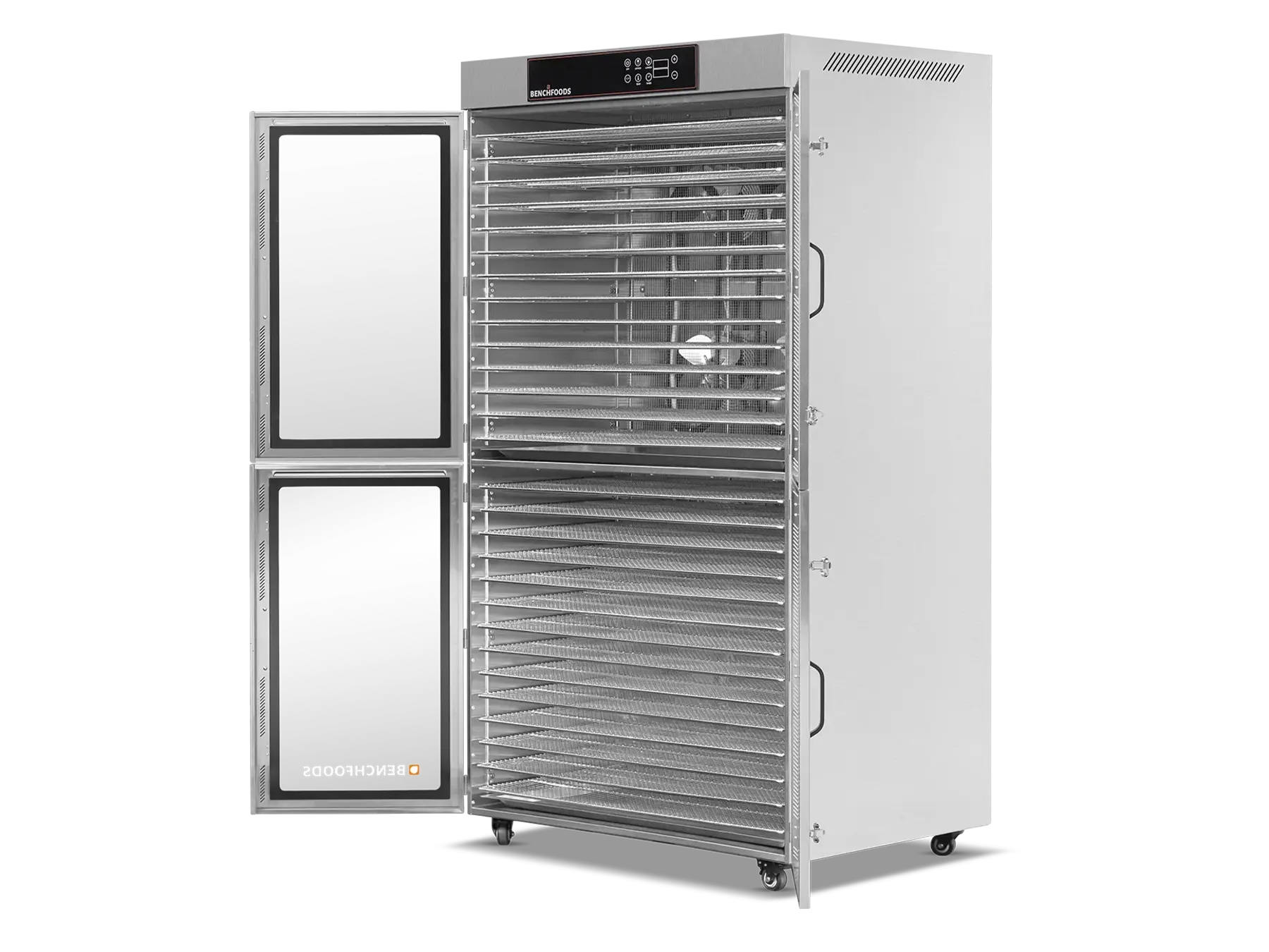 Our Industrial Dehydrators are constructed with the highest quality 304 Food-Grade Stainless Steel available. This stainless steel grade contains higher levels of chromium and nickel, which forms a protective layer on the surface, preventing corrosion (rust), and preventing the formation of bacteria and other microorganisms. Additionally, it’s non-reactive and won’t react with acidic or alkaline substances found in food and cleaning agents. This steel is also very easy to clean and sanitize, which is essential in food production facilities. In summary, using food-grade stainless steel ensures food safety and hygiene by preventing contamination and maintaining the quality of the food being processed.